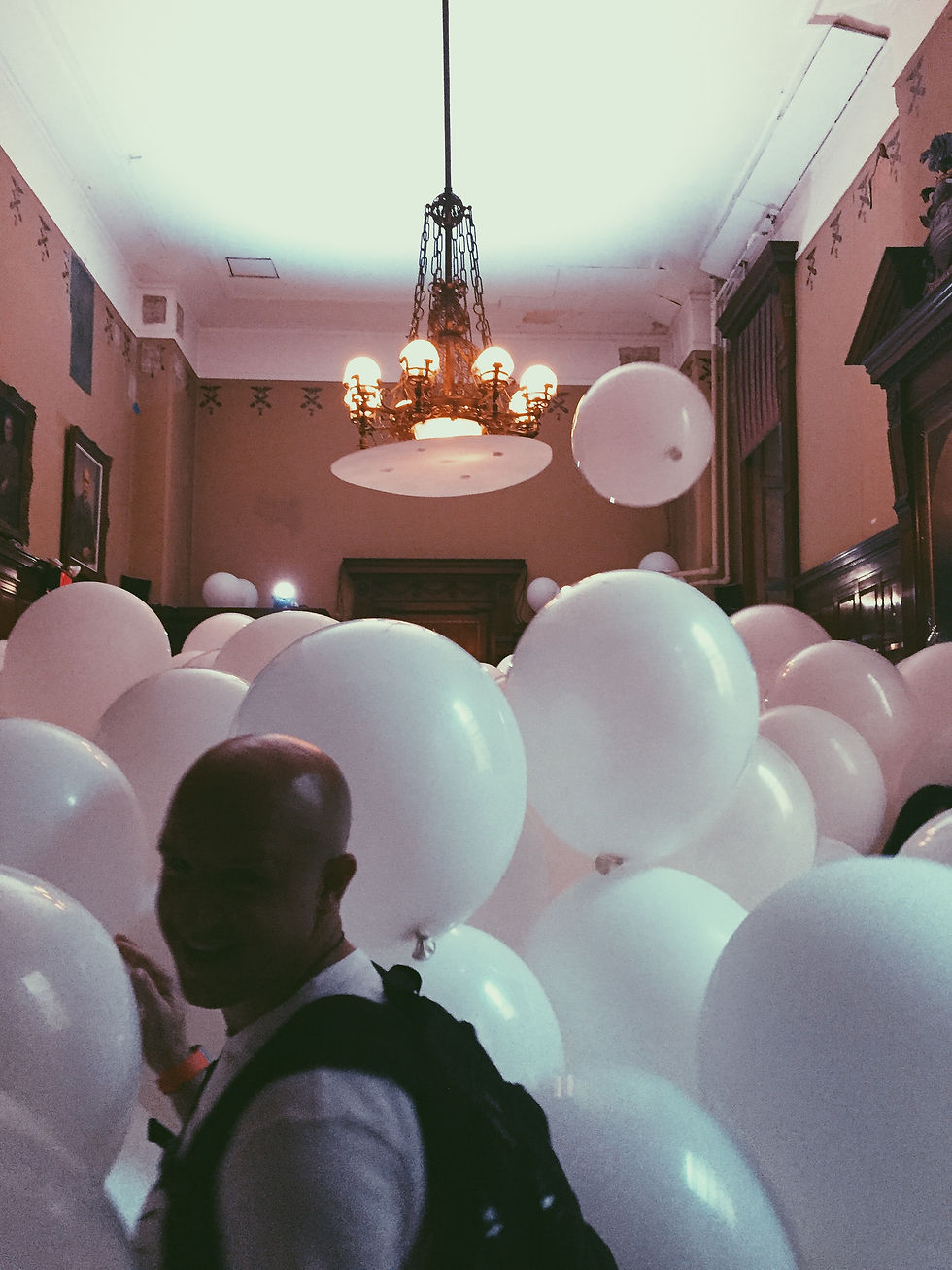 The other day Tim and I explored the Upper East Side for a fun day date at the Armory. I heard about the exhibition, Martin Creed: The Back Door, through one of my favorite bloggers @Taza on Instagram. When I saw giant white balloons I knew I had to come check it out! (balloons are my favorite) The Back Door is amazingly put together using different styles of art form that create contrast and contradictions as to what you'd expect. The whole interior of the armory is beautiful victorian styled military decor with a twist of modern art thrown into the mix which made each new room an adventure thanks to Mr. Creed. As you walk in you hear curtains closing, 5 musicians walking around singing and playing instruments through various rooms, and lights going off and on. And that's not even the half of it! This exhibit was eye catching and best part, made you think out side the box. YOU became the artist as well, whether you took the pictures, stood in front of the lights, or danced to the beat which the musicians played.